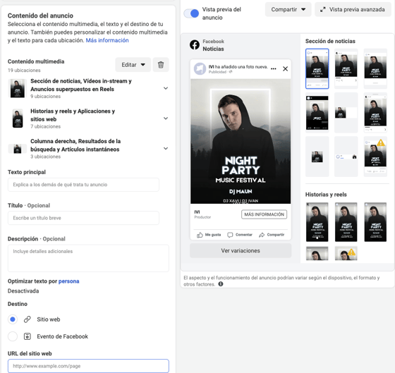 Aquí és on podreu triar la imatge o vídeo que apareixerà juntament amb el text i l'enllaç.